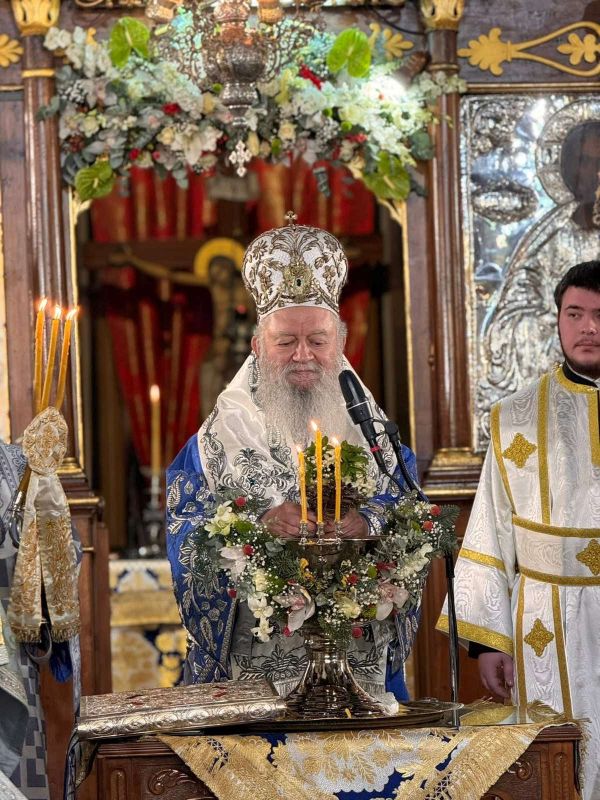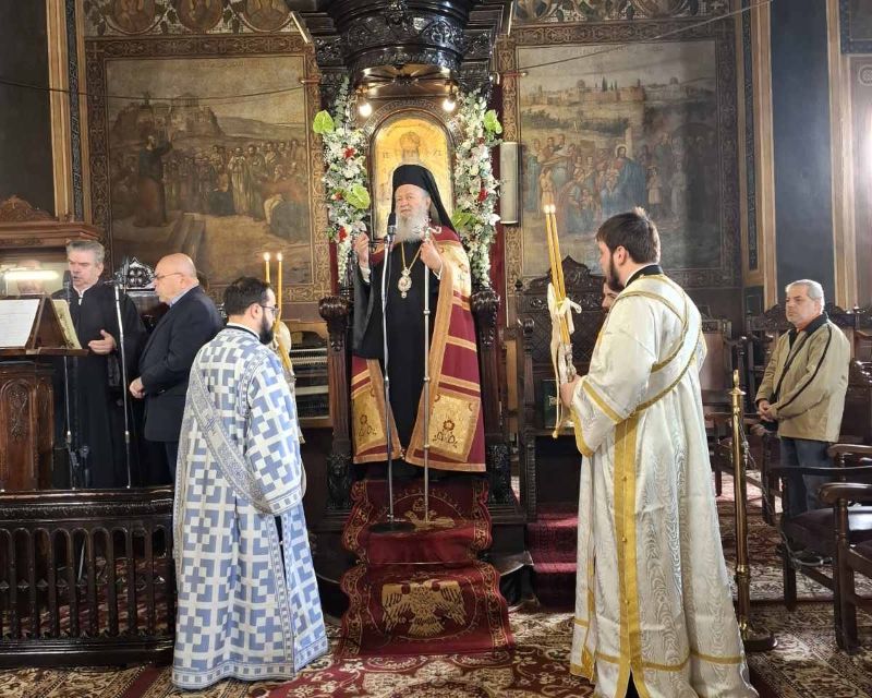 Ο Σεβασμιώτατος χοροστάτησε στον Όρθρο, προεξήρχε της Θείας Λειτουργίας και τέλεσε τον Μεγάλο Αγιασμό, πλαισιούμενος από Κληρικούς του.