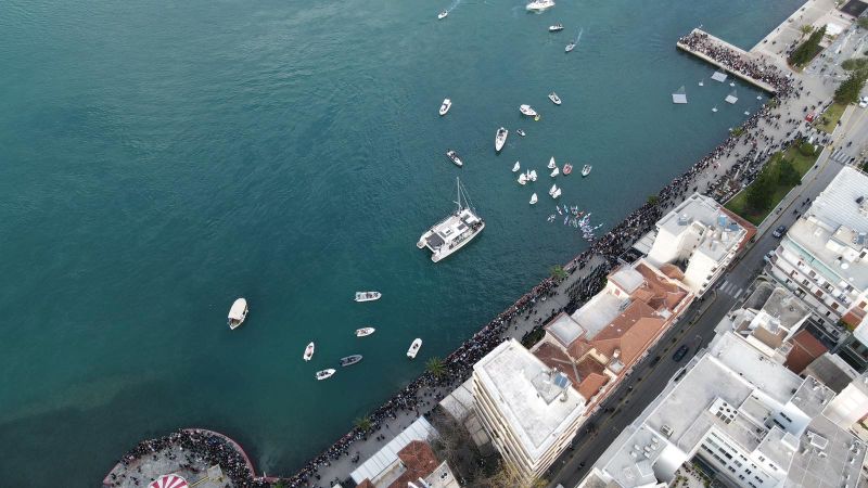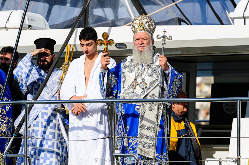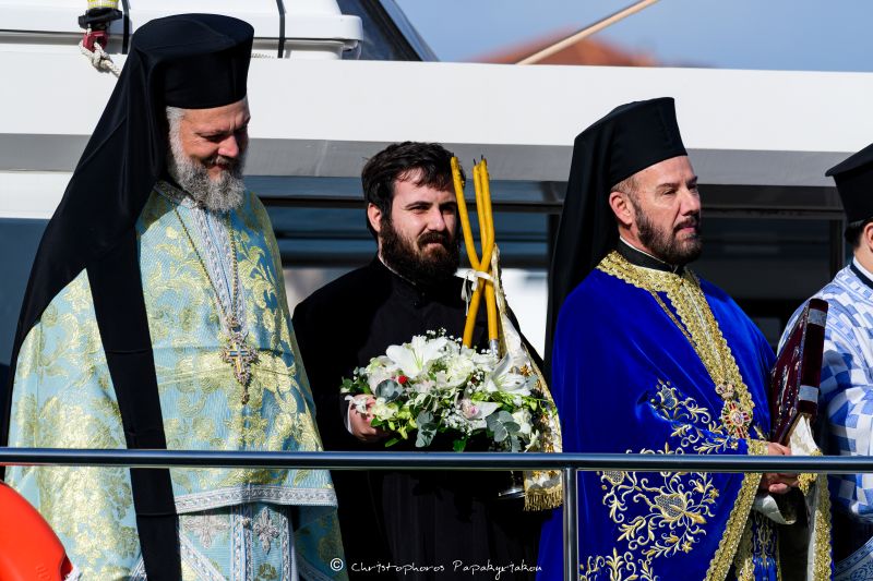 Αμέσως μετά, έλαβε χώρα η λιτάνευση του τιμίου Σταυρού και η τελετή καθαγιασμού των υδάτων στην παραλία της Χαλκίδος, με τη συμμετοχή εκατοντάδων χριστιανών, που κατέκλυσαν όλο τον παραλιακό πεζόδρομο της πόλης.