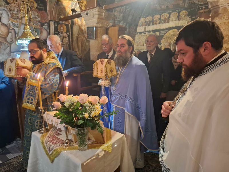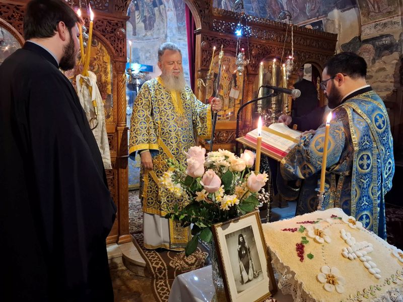Η παρουσία του Σεβασμιωτάτου στην Ιερά Μονή έγινε με διπλή αφορμή, δηλαδή τα ονομαστήρια της Καθηγουμένης Μακαρίας Μοναχής και την 51η επέτειο από την κοίμηση του μακαριστού προκατόχου του Μητροπολίτου Χαλκίδος κυρού Νικολάου (Σελέντη), ο οποίος εκοιμήθη την 19η Ιανουαρίου 1975.