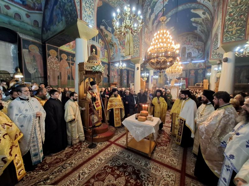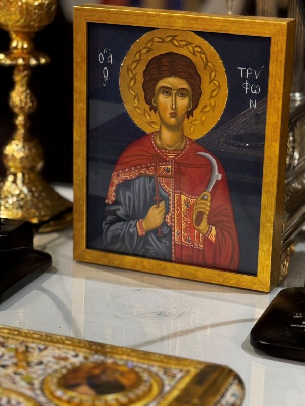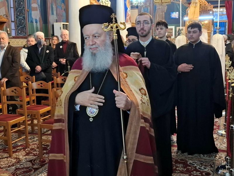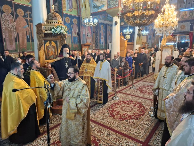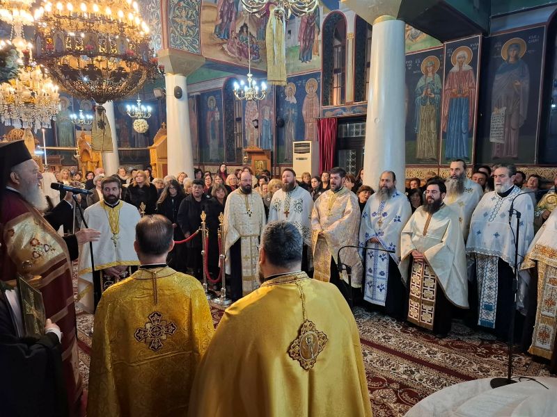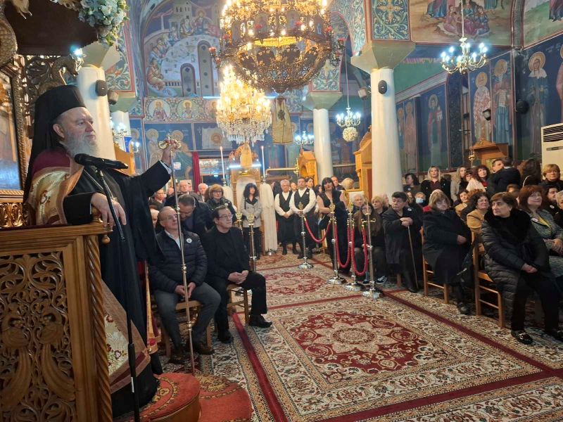 Ο Σεβασμιώτατος κ. Χρυσόστομος, κηρύσσοντας τον θείο λόγο, επεσήμανε την έναρξη του κατανυκτικού Τριωδίου, κατά το οποίο και κυρίως στην αρχή του, οφείλουμε να αγωνισθούμε κατά του διαβόλου, που μας εκτρέπει του σκοπού μας με την πλάνη των διασκεδάσεων. Μάλιστα τόνισε ότι στον αγώνα αυτό παραστέκεται ως βοηθός και κυρίως ως παράδειγμά μας ο άγιος Τρύφων, ο οποίος στη ζωή του αγωνίσθηκε κατά της διαβολικής πλάνης της ειδωλολατρίας, μη φειδόμενος και τη θυσία της ζωής του υπέρ της αληθείας.