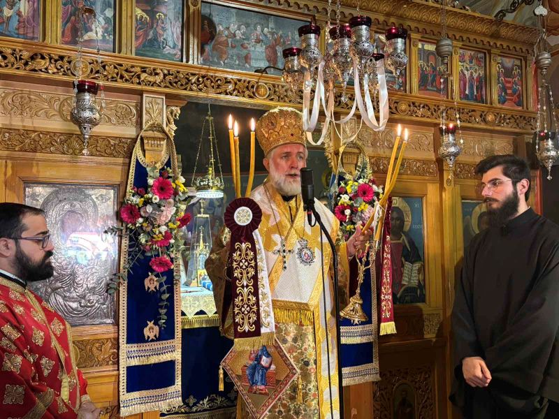 Στην ακολουθία του Μεγάλου Πανηγυρικού Εσπερινού, την Παρασκευή, χοροστάτησε και κήρυξε τον θείο λόγο ο Θεοφιλέστατος Επίσκοπος Σκοπέλου κ. Νικόδημος, με συμμετέχοντες Κληρικούς και λαϊκούς προσκυνητές από την Εύβοια, αλλά και πολλά άλλα μέρη της Πατρίδος μας.