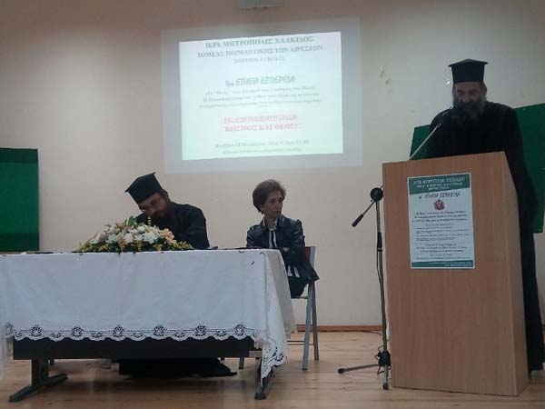Με μεγάλη επιτυχία πραγματοποιήθηκε την Δευτέρα 28 Νοεμβρίου 2016, το απόγευμα, στην αίθουσα εκδηλώσεων του Γυμνασίου Ιστιαίας, η 4η Εσπερίδα του Τομέως Ποιμαντικής των Αιρέσεων Βορείου Ευβοίας με θέμα «Ο ‘‘Θεός’’ του Κόσμου και ο κόσμος του Θεου: Η Εκκοσμίκεση του Λόγου του Θεου ως κίνδυνος πνευματικής αλλοτρίωσης του ανθρώπου και αιρεση».