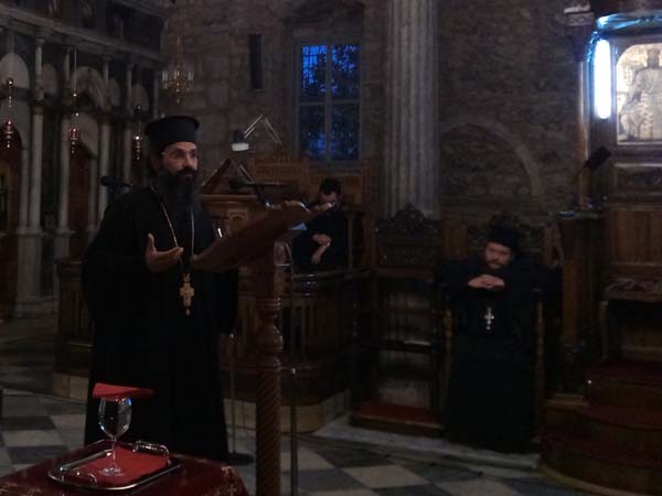 Στην θαυμάσια ομιλία του, με αναφορά στα γεγονότα που μνημονεύονται και εορτάζονται τις ημέρες της Μεγάλης Εβδομάδας, ο π. Σπυρίδων ανέπτυξε μια πορεία προς τον Χριστό ως φιλική συμπόρευση και βάδισμα μαθητείας στο μεγαλείο της θείας κενώσεως υπέρ της σωτηρίας των ανθρώπων.