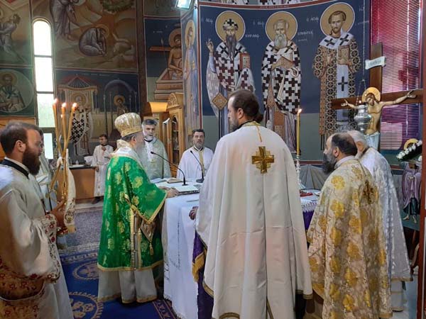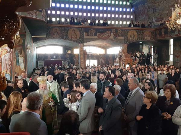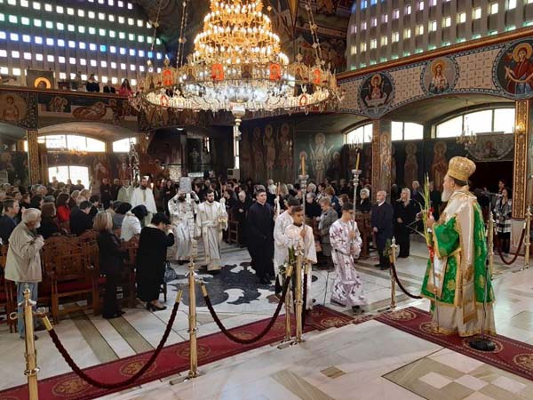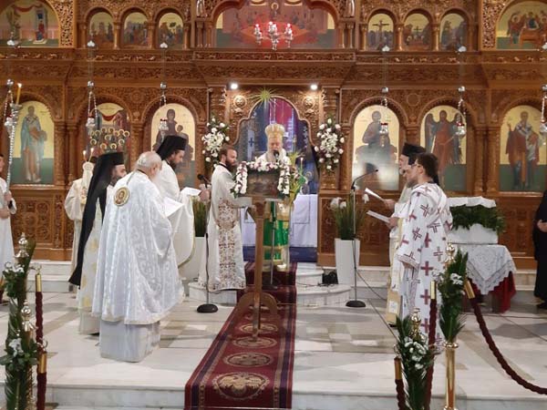 Ο Σεβασμιώτατος Μητροπολίτης Χαλκίδος κ. Χρυσόστομος πλαισιωμένος από τον Αρχιγραμματέα της Ιεράς Συνόδου της Εκκλησίας της Ελλάδος Αρχιμ. Φιλόθεο Θεοχάρη, τον Πρωτοσύγκελλο της Ιεράς Μητροπόλεως Αρχιμ. Νικόδημο Ευσταθίου, τον Ιεροκήρυκα Αρχιμ. Ιωάννη Καραμούζη, τον Προϊστάμενο της Ενορίας Αγ. Αποστόλων Ν. Αρτάκης Αρχιμ. Στέφανο Καραμούζη, τον Πρωτ. Δημήτριο Γροντή και τον Διάκ. Ευγένιο Τσάλλα, προέστη των Ιερών Ακολουθιών στην προαναφερθείσα Ενορία, όπου είχαν προσέλθει από νωρίς στον Όρθρο και συμμετείχαν πληθωρικά στο κοινό Ποτήριο εκατοντάδες πιστοί και κυρίως νέοι, εκ των οποίων πολλοί μαθητές που διακονούν στο ιερό βήμα και στα αναλόγια, απήγγειλαν το Σύμβολο της Πίστεως και την Κυριακή Προσευχή.