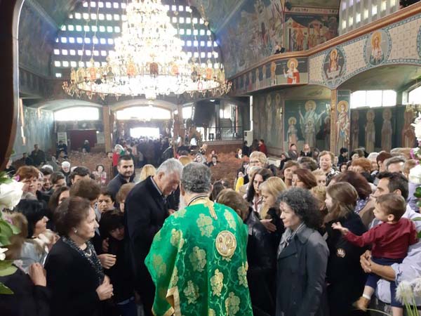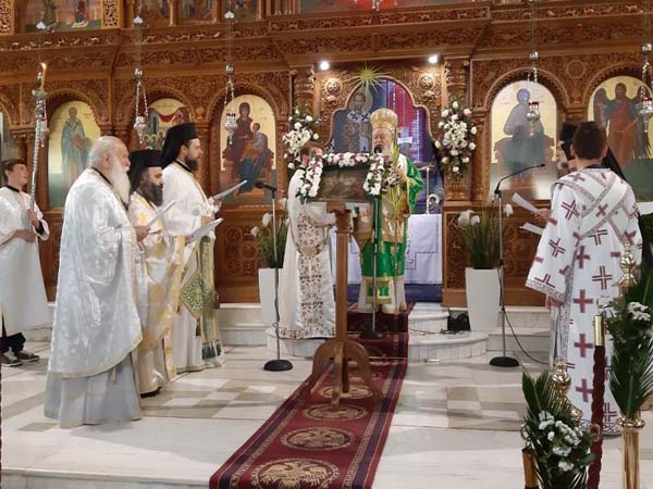 Ο Σεβασμιώτατος ευλόγησε τα Βάϊα και τα διένειμε στους πιστούς κατά την τάξη του Πατριαρχείου Ιεροσολύμων, δηλαδή αμέσως μετά το τέλος της Θείας Λειτουργίας αφού προηγήθηκε λιτανεία της ιεράς εικόνας της βαϊοφόρου εντός του Ιερού Ναού.