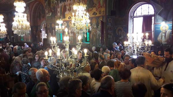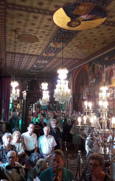 Κατά την διανομή του Αντιδώρου από τον Σεβασμιώτατο, ομάδας Ορθοδόξων Σέρβων έψαλλαν θεομητορικούς ύμνους.