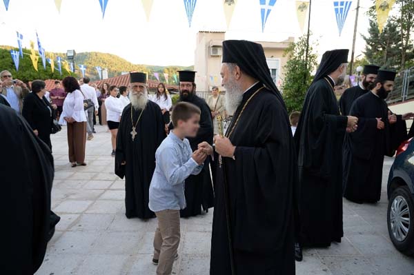 Στον πανηγυρίζοντα Ι. Ναό του Μαντουδίου την παραμονή, Τετάρτη 25 Σεπτεμβρίου 2019 χοροστάτησε κατά τον Μεγάλο Εσπερινό ο Σεβασμιώτατος Μητροπολίτης Χαλκίδος κ. Χρυσόστομος, πλαισιούμενος από τον Πρωτοσύγκελλό του Αρχιμ. Νικόδημο Ευσταθίου, τους Κληρικούς της Αρχιερατικής Περιφερείας Κηρέως με επικεφαλής τον Αρχιερατικό Επίτροπο και Προϊστάμενο της Ενορίας Μαντουδίου Πρωτοπρεσβ. Ιωάννη Μάρκου και άλλους Ιερείς της περιοχής, μεταξύ των οποίων και ο εκ της Μητροπόλεως Καρυστίας και Σκύρου Πρωτοπρεσβ. Ευάγγελος Σκιάνης.