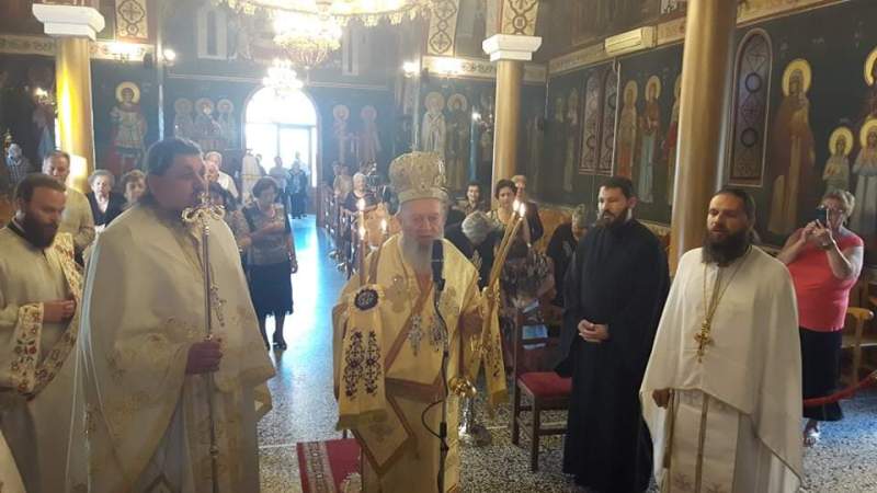 Την δε κυριώνυμη ημέρα τελέσθηκε ο Όρθρος και η Αρχιερατική Θεία Λειτουργία, προεξάρχοντος του Σεβασμιωτατου Ποιμενάρχου Μητροπολίτου Χαλκίδος κ. Χρυσοστόμου, πλαισιουμένου από του άγοντος την ονομαστική του εορτή, Αρχιμ. Ρωμανού Μπασινά, του Αρχιμ. Χριστοφόρο Παπαθανασίου, εκ της Ιεράς Μονής Αγίου Γεωργίου ΑΡΜΑ, των Πρωτοπρεσβυτέρων Βασιλείου Πασσά, εκ της Ιεράς Μητροπόλεως Κηφισίας και Γεωργίου Μωραΐτη-Προϊσταμένου της Ενορίας Κοιμ. Θεοτόκου Δοκού, του Οικονόμου Κυριακού Κοκκάλα-Εφημερίου του Ι. Ν. Τιμίου Προδρόμου Αμαρύνθου, του Πρεσβ. Ευαγγέλου Πράγια-Εφημέριο Ι. Ν. Κοιμήσεως της Θεοτόκου Δοκού Χαλκίδος και των Διακ. Νικολάου Πριμηκύριου και Ευγενίου Τσάλλα.