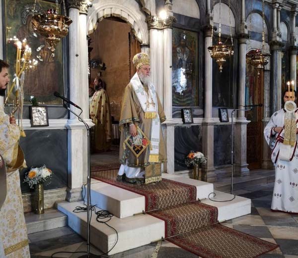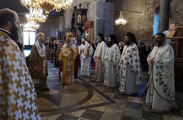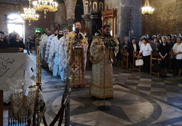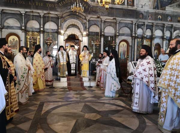 Στον Όρθρο χοροστάτησε ο Σεβασμιώτατος άγιος Χαλκίδος, ενώ στη Θεία Λειτουργία προέστη ο Σεβασμιώτατος άγιος Κορίνθου, με συλλειτουργούς τον Αρχιγραμματέα της Ιεράς Συνόδου Αρχιμ. Φιλόθεο Θεοχάρη, τον Πρωτοσύγκελλο της Ιεράς Μητροπόλεως Αρχιμ. Νικόδημο Ευσταθίου, τον Γενικό Αρχιερατικό Επίτροπο Αρχιμ. Νικηφόρο Ευσταθίου, τους Αρχιμ. Νεκτάριο Ευγενικό-Ιεροκήρυκα, Μεθόδιο Φουντούλη-Εφημέριο του Ι. Προσκ. Ν. Παναγίας Φανερωμένης Ν. Αρτάκης, Συμεών Ηλιοδρομίτη-Προϊστάμενο του Ι. Ν. Αγ. Παρασκευής, τον Πρωτοπρεσβ. Ηλία Κρητίδη-Στρατιωτικό Ιερέα, τον Οικον. Ιωάννη Φαφούτη-Εφημέριο της Ενορίας της Πολιούχου και τους Διακ. Δαμασκηνό Γεννηματά, εκ Κορίνθου, Νικόλαο Πριμηκύριο και Ευγένιο Τσάλλα.