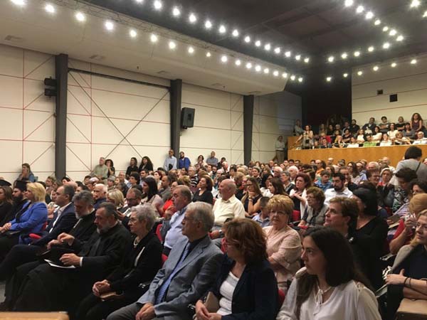 Στο κατάμεστο θέατρο έδωσαν το “παρών” ο Σεβασμιώτατος Μητροπολίτης Χαλκίδος κ. Χρυσόστομος, πολλοί εκ των Κληρικών της Ι. Μητροπόλεως, ο Αντιπεριφερειάρχης Ευβοίας κ. Γεώργιος Κελαϊδίτης, η Δήμαρχος Χαλκιδέων κ. Έλενα Βάκα, Αντιδήμαρχοι και Δημοτικοί σύμβουλοι, ο υπεύθυνος των εκδόσεων “Αρχονταρίκι” κ. Νικόλαος Σαμπαζιώτης, ο ευεργέτης της Ιεράς Μητροπόλεως Χαλκίδος κύριος Άγγελος Πνευματικός και πλήθος μεγάλο διακεκριμένων συμπολιτών και πιστών μελών της τοπικής μας Εκκλησίας που ανταποκρίθηκαν θετικά στην πρόσκλησή Της.