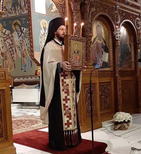 Στην Ιερά Αγρυπνία, η οποία μεταδόθηκε σε απευθείας σύνδεση από τον Ραδιοφωνικό Σταθμό της Ι. Μητροπόλεως Χαλκίδος, προεξήρχε ο Σεβασμιώτατος Μητροπολίτης Χαλκίδος κ. Χρυσόστομος, συλλειτουργούντων και άλλων Κληρικών της Τοπικής μας Εκκλησίας και πολλών ευσεβών χριστιανών, ενώ το ιερό Αναλόγιο διηκόνησε εξαιρετικά Χορός Ιεροψαλτών του Ενοριακού Ι. Ν. Ευαγγελιστού Λουκά (Πατησίων), υπό την διεύθυνση του κ. Κυριάκου Στάντζου, Καθηγητού της Σχολής Βυζαντινής Μουσικής της Ι. Μητροπόλεως, με την συμμετοχή και άλλων μαθητών του.