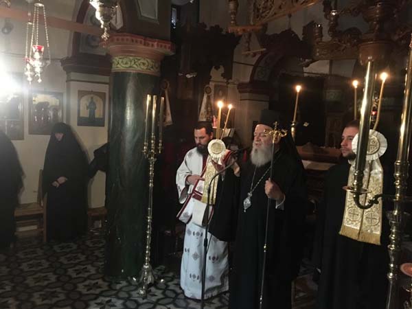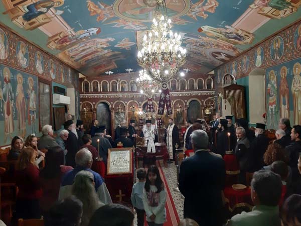 Το πρωί της Κυριακής, 3 Νοεμβρίου 2019, ο Σεβασμιώτατος μετέβη στην πανηγυρίζουσα γυναικεία Ι. Μονή Αγ. Γεωργίου Ηλίων, όπου χοροστάτησε στον Όρθρο, προεξήρχε στην τελεσθείσα Θεία Λειτουργία, με συλλειτουργούς Κληρικούς της περιοχής, και ομίλησε επίκαιρα στους, από νωρίς, προσελθόντες πιστούς, μεταξύ των οποίων ο Δήμαρχος Ιστιαίας-Αιδηψού κ. Ιωάννης Κοτζιάς. Μάλιστα στην ομιλία του ο Σεβασμιώτατος ανέφερε εν συντομία το ιστορικό του εορτάσιμου γεγονότος της ανακομιδής των λειψάνων του Αγ. Γεωργίου και ανέλυσε την πίστη της Εκκλησίας, ότι κάθε άνθρωπος είναι ψυχοσωματική οντότητα και αποτελεί ναό και κατοικητήριο του Αγίου Πνεύματος και ανεφέρθη και στο ζήτημα της λεγομένης «καύσεως των νεκρών», εκφράζοντας την διδασκαλία της Εκκλησίας.