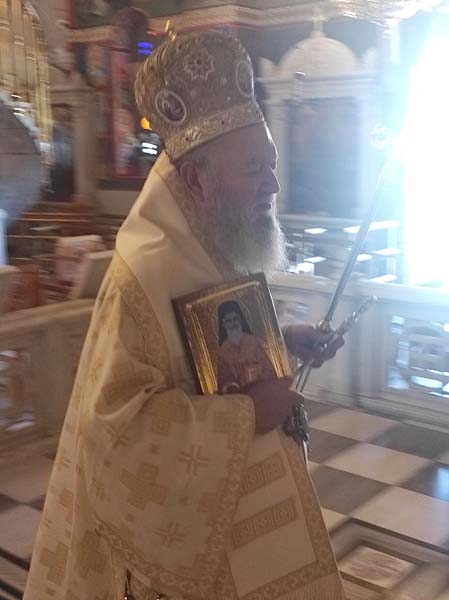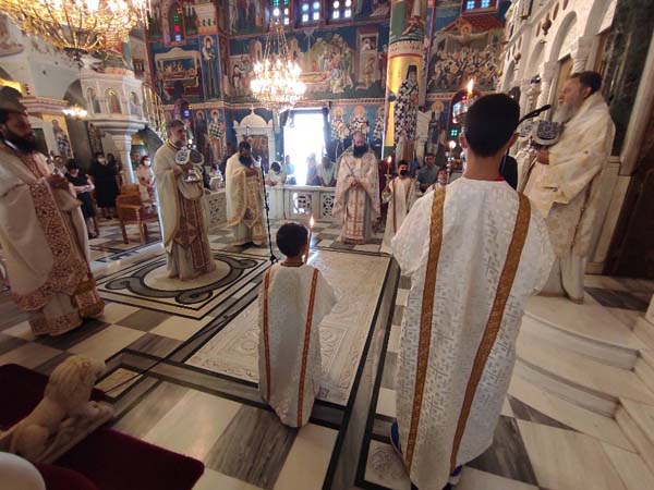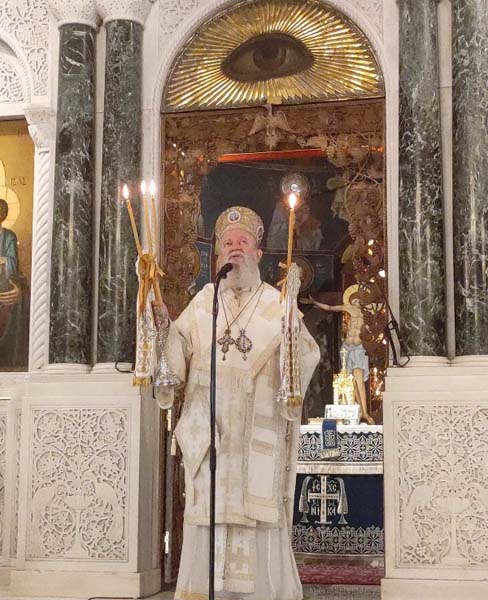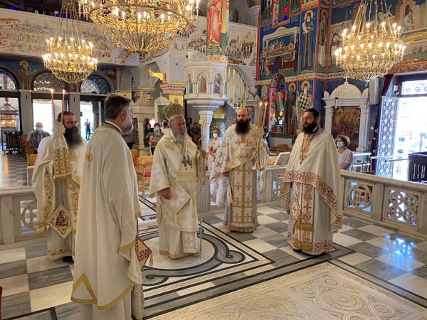 Εκεί, ο Σεβασμιώτατος χοροστάτησε στον Όρθρο, προεξήρχε στη Θεία Λειτουργία με συλλειτουργούς τον Πρωτοσύγκελλό του Αρχιμ. Νικόδημο Ευσταθίου, τον Πρωθιερέα του Ι. Προσκυνήματος Πρωτοπρεσβ. Νικόλαο Βερνέζο και τους Οικον. Δημήτριο Πατεράκη-Εφημέριο του Ενοριακού Ι. Ν. Αγ. Κωνσταντίνου και Ελένης Ν. Προκοπίου και Ιωάννη Γκέκα-Εφημέριο του Ενοριακού Ι. Ν. Αγ. Τριάδος Βλαχιάς.