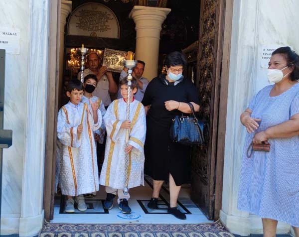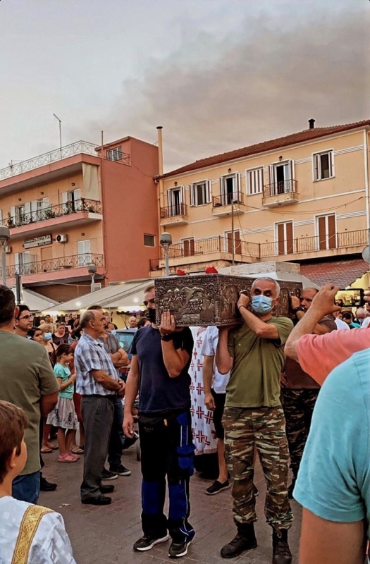 Ιδιαιτέρως συγκινητική ήταν η παρουσία πυροσβεστών και εθελοντών, οι οποίοι, πριν αναχωρήσουν για τα σημεία δράσης και επιφυλακής, περνούσαν να λάβουν την ευχή του Ποιμενάρχη τους.