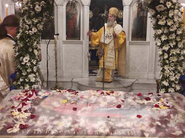 Το βράδυ της Τετάρτης 18 Αυγούστου 2021, στο Ι. Προσκύνημα Παναγίας Φανερωμένης Νέας Αρτάκης, ετελέσθη Ιερά Αγρυπνία, με αφορμή την επικείμενη πανήγυρη του Ι. Προσκυνήματος (22-23 Αυγούστου 2021), στις ιερές ακολουθίες της οποίας χοροστάτησε ο Σεβασμιώτατος Ποιμενάρχης μας, Μητροπολίτης Χαλκίδος κ. Χρυσόστομος, ο οποίος προεξήρχε και στη Θεία Λειτουργία με συλλειτουργούς τους Αρχιμ. Αιμιλιανό Χρήστου-Προϊστάμενο του Μητροπολιτικού Ι. Ν. Αγ. Δημητρίου Χαλκίδος, Δαμασκηνό Παπακωνσταντίνου-Εφημέριο της Ενορίας Ευβοέων Αγίων Χαλκίδος, Σεραφείμ Σπέη και Μεθόδιο Φουντούλη-Εφημερίους του Ιερού Προσκυνήματος και τους Διακόνους Νικόλαο Πριμηκύριο και Ευγένιο Τσάλλα.