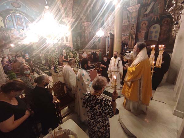 Ευσεβείς Χριστιανοί, οι οποίοι, τηρώντας τα προβλεπόμενα μέτρα προστασίας κατά της διασποράς του νέου κορωνοϊού, προσκύνησαν την θαυματουργό εικόνα της Παναγίας, συμμετείχαν με ευλάβεια στα τελούμενα, ενώ κοινώνησαν των Αχράντων Μυστηρίων, όπως η παράδοση της Εκκλησίας μας προβλέπει.