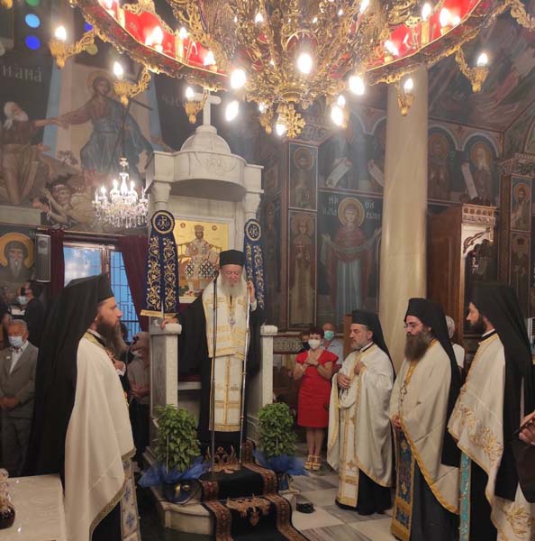 Την Κυριακή 22 Αυγούστου 2021, παραμονή της αποδόσεως της Εορτής της Κοιμήσεως της Θεοτόκου, ο Σεβασμιώτατος Ποιμενάρχης μας, Μητροπολίτης Χαλκίδος κ. Χρυσόστομος μετέβη στον Ιερό Προσκυνηματικό Ναό Παναγίας Φανερωμένης Νέας Αρτάκης, όπου χοροστάτησε στον Πανηγυρικό Εσπερινό, στον οποίο συμμετείχαν πολλοί Κληρικοί της Μητροπόλεως, αλλά και ο ευσεβής λαός, μεταξύ των οποίων ο Αντιπεριφερειάρχης Π. Ε. Ευβοίας κ. Γεώργιος Κελαϊδίτης, η Δήμαρχος Χαλκιδέων κ. Έλενα Βάκα, άλλοι Περιφερειακοί και Δημοτικοί Σύμβουλοι, προσκυνητές όλοι της χάρης της Υπεραγίας Θεοτόκου.