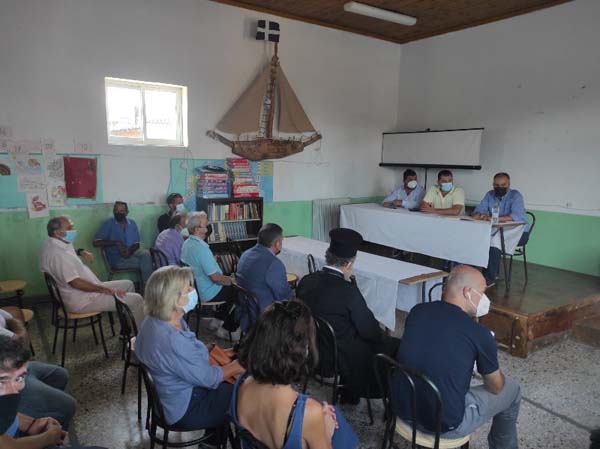 Το απόγευμα της Δευτέρας 23 Αυγούστου 2021, στο Δημοτικό Σχολείο του πυρόπληκτου χωριού Παπάδες του Δήμου Μαντουδίου-Λίμνης-Αγίας Άννας, ο Σεβασμιώτατος Ποιμενάρχης μας, Μητροπολίτης Χαλκίδος κ. Χρυσόστομος, ανταποκρινόμενος στην πρόσκληση του Περιφερειάρχη Στερεάς Ελλάδας κ. Φάνη Σπανού, παρευρέθηκε σε σύσκεψη, στην οποία έλαβαν μέρος ο Περιφερειάρχης Στερεάς Ελλάδας κ. Φάνης Σπανός, ο Αντιπεριφερειάρχης Π.Ε. Ευβοίας κ. Γεώργιος Κελαϊδίτης, οι Δήμαρχοι των πυροπλήκτων Δήμων, εκπρόσωποι τοπικών φορέων, Πρόεδροι και μέλη τοπικών Συλλόγων ρητινοκαλλιεργητών, κτηνοτρόφων, ελαιοπαραγωγών, ξενοδόχων κλπ, όπου συζητήθηκαν τα προκύψαντα προβλήματα του τόπου, μετά την επέλαση της πύρινης λαίλαπας και έγιναν προτάσεις εν όψει του αυριανού Περιφερειακού Συμβουλίου, το οποίο αυτή τη φορά θα συνεδριάσει στα Λουτρά της Αιδηψού.