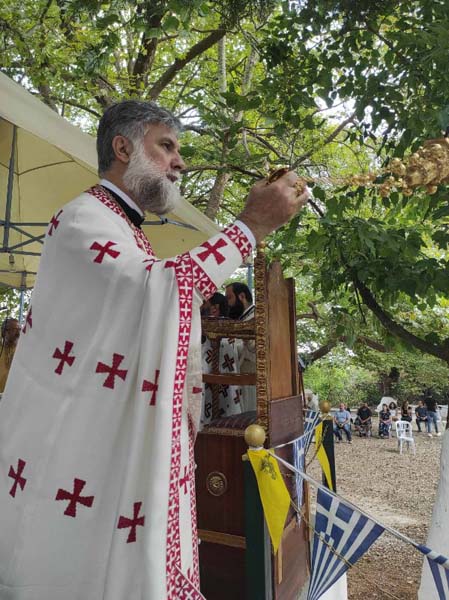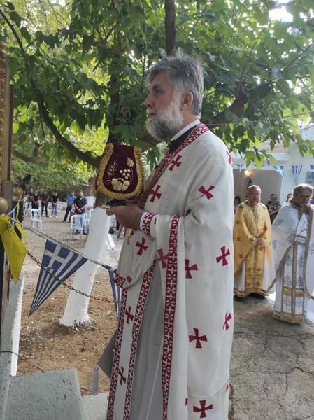 Την Τρίτη 24 Αυγούστου 2021 το πρωί, ο Σεβασμιώτατος Ποιμενάρχης μας, Μητροπολίτης Χαλκίδος κ. Χρυσόστομος, μετέβη στην Ενορία Δάφνης-Μουρτιά, απ’ όπου ξέσπασε η πυρκαγιά στις 3 Αυγούστου 2021, εντός των ορίων της Αρχιερατικής Περιφερείας Αιγαίων, όπου στο πανηγυρίζον Ι. Εξωκκλήσιο του Αγίου Κοσμά του Αιτωλού χοροστάτησε στον Όρθρο και τέλεσε τη Θεία Λειτουργία, με την συλλειτουργία πληθύος Ιερέων της περιοχής, με επικεφαλής τον Πρωτοσύγκελλο της Ιεράς Μητροπόλεως, Αρχιμ. Νικόδημο Ευσταθίου και συμπροσευχόμενο τον Αρχιερατικό Επίτροπο της περιοχής, Πρωτοπρεσβ. Κωνσταντίνο Λιάσκο.