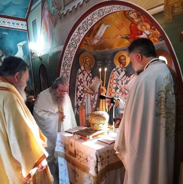 Συλλειτουργοί του Σεβασμιωτάτου ήταν οι Αρχιμ. Νικόδημος Ευσταθίου-Πρωτοσύγκελλος της Ι. Μητροπόλεως, Γαβριήλ Εμμανουηλίδης-Καθηγούμενος της Ι. Μονής Οσίου Δαυΐδ Γέροντος Λίμνης, ο οποίος εκόμισε εκεί και την τιμία κάρα του Οσίου Δαυΐδ, προς ενίσχυση των εμπερίστατων αδελφών μας, ο Πρωτοπρεσβ. Νικόλαος Αναστασίου-Εφημέριος της Ενορίας Αγ. Δημητρίου Ροβιών και ο Διάκ. Νικόλαος Πριμηκύριος.