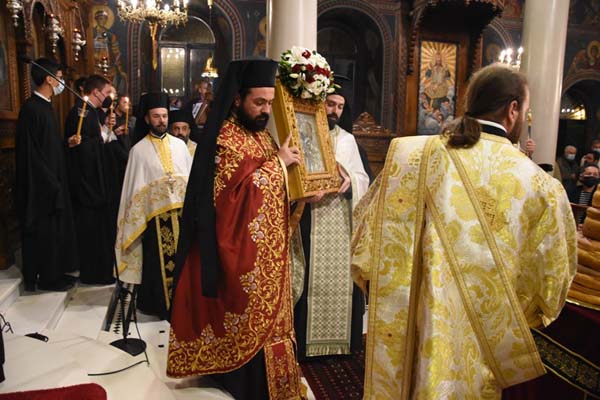 Την παραμονή της πανηγύρεως το απόγευμα, Δευτέρα 25 Οκτωβρίου 2021, εψάλη ο Μέγας Πανηγυρικός Αρχιερατικός Εσπερινός, στον οποίο χοροστάτησε και κήρυξε τον θείο λόγο ο Σεβασμιώτατος Ποιμενάρχης μας, Μητροπολίτης Χαλκίδος κ. Χρυσόστομος, με την συμμετοχή Κληρικών της Αρχιερατικής Περιφερείας Χαλκίδος, του Περιφερειάρχου Στερεάς Ελλάδος κ. Φάνη Σπανού, του Αντιπεριφερειάρχου Ευβοίας κ. Γεωργίου Κελαϊδίτη, της Δημάρχου Χαλκιδέων κ. Έλενας Βάκα, της Προέδρου του Δημοτικού Συμβουλίου του Δήμου Χαλκιδέων κ. Δήμητρας Σακελλαράκη του Βουλευτού Ευβοίας κ. Αθανασίου Ζεμπίλη, του τ. Βουλευτού και Ευεργέτου της Ι. Μητροπόλεως κ. Αγγέλου Πνευματικού Περιφερειακών και Δημοτικών Συμβούλων κ.ά.