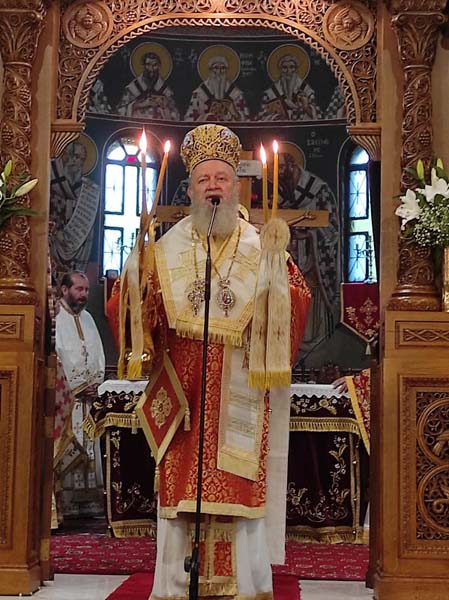 Στο κήρυγμά του ο Σεβασμιώτατος, αναφερθείς στη σύναξη χριστιανών νέων με το όνομα «Καταφυγή», την οποία είχε ιδρύσει ο Άγιος Δημήτριος και έγινε η αιτία να κατηγορηθεί και να οδηγηθεί στο μαρτύριο, ανέπτυξε πώς οι Άγιοι και η Αγία μας Εκκλησία γίνονται καταφύγια των χριστιανών, όταν εκείνοι προσφεύγουν προς τους Αγίους, με επιθυμία μιμήσεως της εν Χριστώ ζωής τους και προς την Εκκλησία, με ζήλο αγιασμού, αφού μόνο αυτή μπορεί να τον παρέχει στον κόσμο.