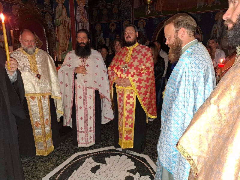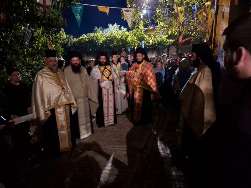 Το εσπέρας της Τρίτης τελέσθηκε ο πανηγυρικός Εσπερινός, με τη συμμετοχή Κληρικών της Ι. Μητροπόλεως Κορίνθου και εκ των Αρχιερατικών Περιφερειών Χαλκίδος, Μεσσαπίων και Διρφύων, ενώ προσκυνητές είχαν κατακλύσει το καθολικό και το προαύλιο του Ησυχαστηρίου.