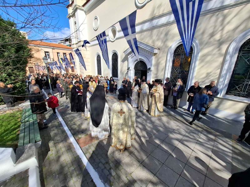 Η λατρευτική σύναξη ολοκληρώθηκε με τη λιτάνευση των ιερών εικόνων από τον Θεοφιλέστατο κ. Νικόδημο, τους συλλειτουργούς του Κληρικούς, τους αιρετούς εκπροσώπους του Κοινοβουλίου, της Περιφέρειας Στερεάς Ελλάδος, του Δήμου Χαλκιδέων, της Π.Ε. Ευβοίας και όλους τους εκκλησιασθέντες ενορίτες και προσκυνητές.