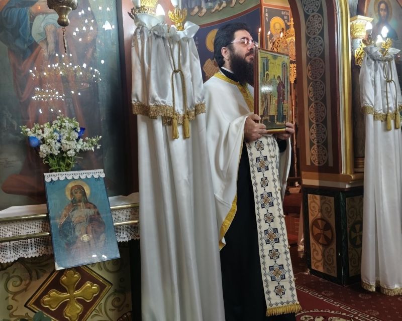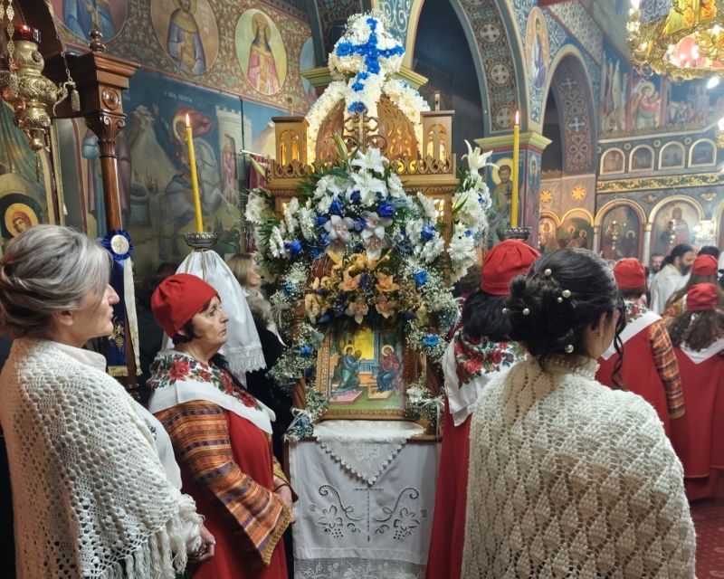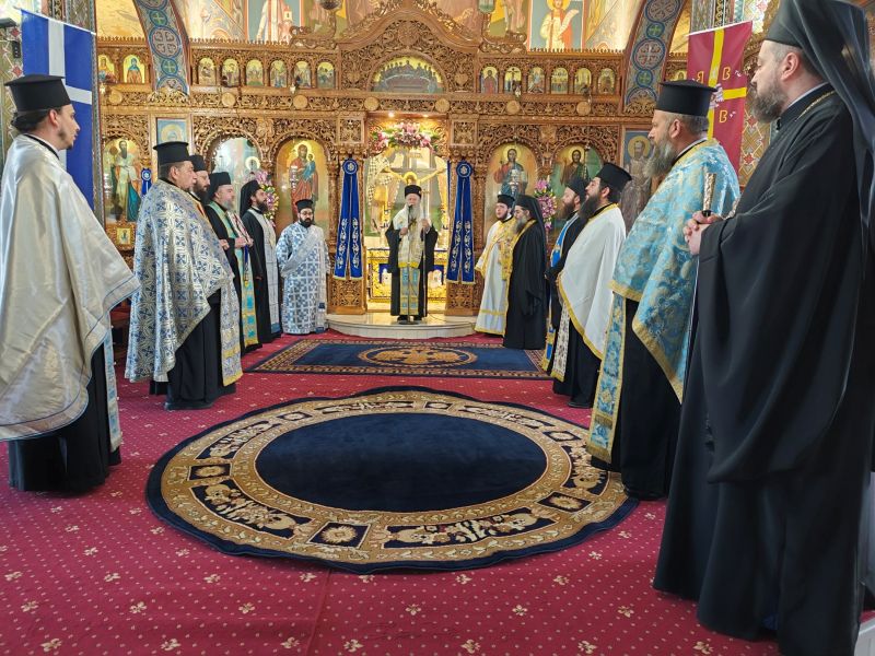 Μετά την επιστροφή της λιτανείας στον Ι. Ναό τελέσθηκε μεθέορτος Εσπερινός, χοροστατούντους του Σεβασμιωτάτου κ. Χρυσοστόμου.