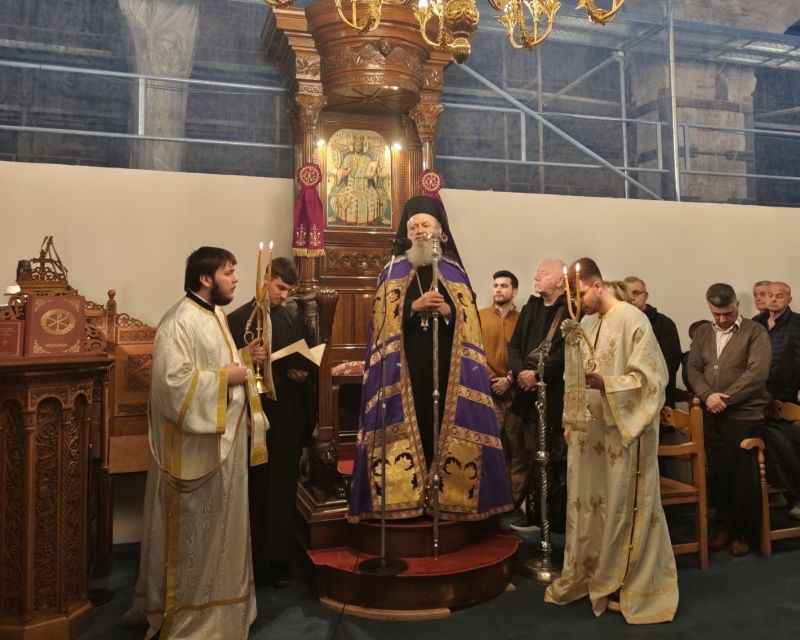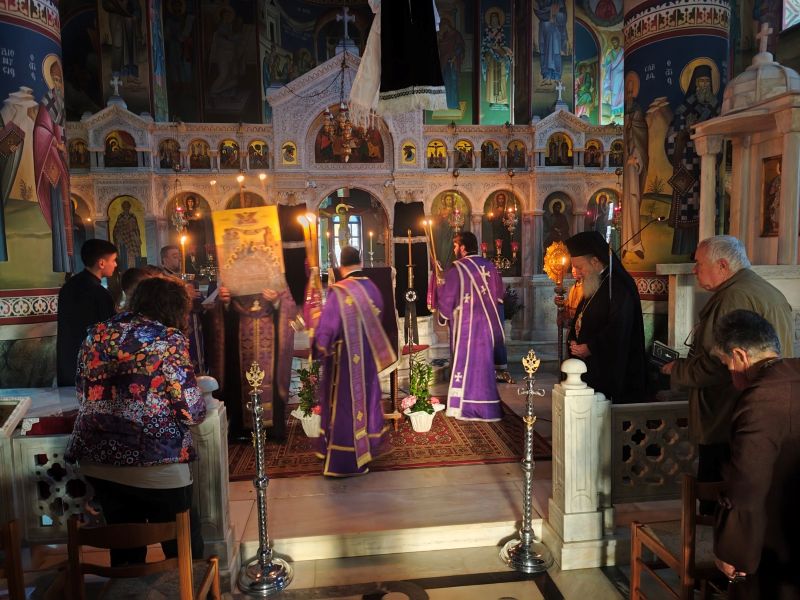 Κατά τον Όρθρο της Μεγάλης Παρασκευής (εσπέρας Μ. Πέμπτης) ο Σεβασμιώτατος Ποιμενάρχης μας, Μητροπολίτης Χαλκίδος κ. Χρυσόστομος χοροστάτησε στον υπό αναστήλωση ιστορικό Ι. Ναό αγ. Παρασκευής πολιούχου Χαλκίδος, όπου συμμετείχε μεγάλο πλήθος χριστιανών.