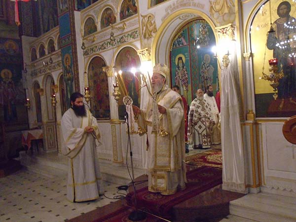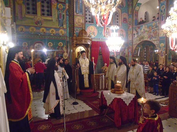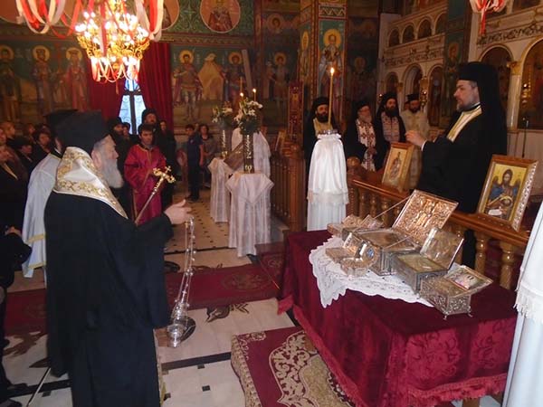Την Δευτέρα το απόγευμα έλαβε χώρα η υποδοχή των Ιερών Λειψάνων κάποιων εκ των Ευβοέων Αγίων στον προαύλιο χώρο του Ιερού Ναού και στη συνέχεια ετελέσθη Ιερά Αγρυπνία, προεξάρχοντος του Σεβασμιωτάτου Μητροπολίτου Χαλκίδος κ. Χρυσοστόμου, με τη συμμετοχή του Ιερού Κλήρου και των ευσεβών χριστιανών, ενώ την ιερά Υμνωδία διηκόνησε θαυμασιώτατα Χορός Ιεροψαλτών από μαθητές της Σχολής Βυζαντινής Μουσικής της Ιεράς Μητροπόλεως Χαλκίδος.