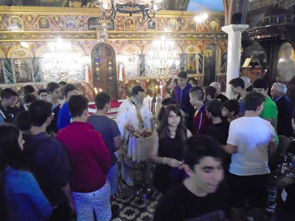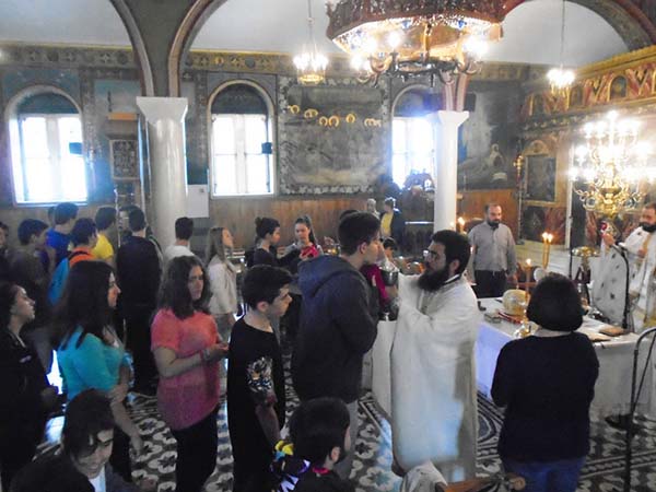 Στα πλαίσια της εποπτικής-βιωματικής διδασκαλίας του μαθήματος των Θρησκευτικών, οι μαθητές είχαν την ευκαιρία να συμμετάσχουν στη Θεία Λειτουργία, κατά τη διάρκεια της οποίας ο Σεβασμιώτατος εξηγούσε τα τελούμενα, τα μέρη της Λειτουργίας και τη σημασία της χρήσης των Ιερών Σκευών.