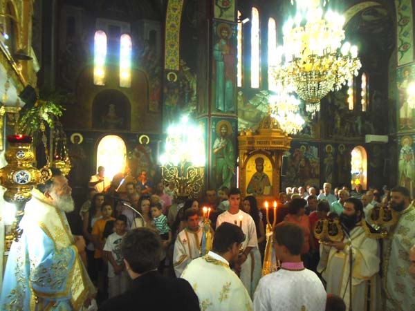 Μετά την ανάγνωση της τεταγμένης ευαγγελικής περικοπής (Ματθ. 22, 2-14), ο Σεβασμιώτατος απηύθυνε διδακτικότατο κήρυγμα προς τους πολυπληθείς πιστούς, αναλύοντας το περιεχόμενο του ευαγγελικού αναγνώσματος και τονίζοντας πως η κατακλείδα της περικοπής «πολλοί γαρ εισί κλητο?, ολ?γοι δε εκλεκτο?» αποτελεί έναυσμα προβληματισμού για τον κάθε Χριστιανό ξεχωριστά. Κλείνοντας, έφερε το παράδειγμα του Οσίου Ιωάννου, ο οποίος δια βίου απαντούσε θετικά στην πρόσκληση του Θεού και αγωνιζόταν πάντοτε, να φέρει το κατάλληλο ένδυμα γάμο, δηλαδή μια ένθεη ζωή και καλλιεργημένη ψυχή.