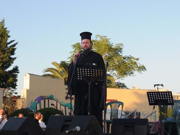 Η Εκδήλωση άνοιξε με σύντομη προσλαλιά του υπεύθυνος λειτουργίας της Σχολής Αρχιμ. Φιλοθέου Θεοχάρη, Γενικού Αρχιερατικού Επιτρόπου της Ι. Μητροπόλεως, ο οποίος κάνοντας έναν απολογισμό της λειτουργίας της Σχολής, ευχαρίστησε όλους, όσοι συντελούν στην λειτουργία της Σχολής και στα 9 παραρτήματά της, όπως και όσους βοήθησαν για την πραγματοποίηση της Εκδήλωσης, η οποία, σύμφωνα με κοινή απόφαση όλων των συμμετεχόντων, αφιερώθηκε στον Σεβασμιώτατο για την 34η επέτειο της εις Διάκονον χειροτονίας του και της εισόδου του στις τάξεις του Ιερού Κλήρου, την 5η Ιουνίου 1983, δια χειρών του μακαριστού Μητροπολίτου Χαλκίδος κυρού Χρυσοστόμου Α΄.