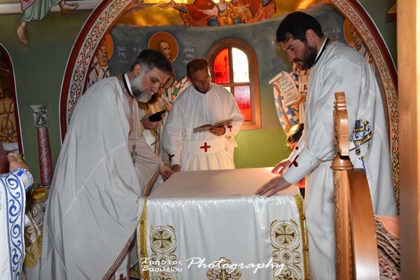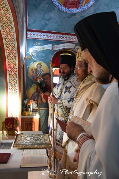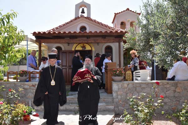 Σε όλο το Ιερό Εκκλησίασμα, μοιράστηκε ως ενθύμιο των Εγκαινίων τμήμα της στολής που φορούσαν οι Αρχιερείς κατά την ακολουθία, εμβαπτισμένο σε κηρομαστίχη. Ακολούθησε κέρασμα, στην παρακείμενη οικία των κτητόρων του Ναού, στους επισήμους και όχι μόνο, αλλά και σε πλήθος πιστών, ενώ όλη την ημέρα ο Ιερός Ναός παρέμεινε ανοιχτός για προσκύνηση.
