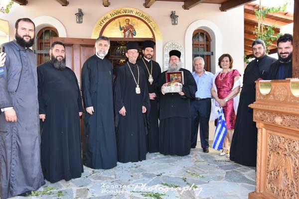 Ο Σεβασμιώτατος Μητροπολίτης Αγίου Φραγκίσκου κ. Γεράσιμος, συμπαραστατούμενος υπό του Θεοφιλεστάτου Πρωτοσυγκέλλου του, Επισκόπου Μηδείας κ. Αποστόλου, υποδέχθηκε τα ιερά λείψανα, τα οποία προσεκόμισε ο Πρωτοσύγκελλος της Ιεράς Μητροπόλεως Χαλκίδος Αρχιμανδρίτης Νικόδημος Ευσταθίου, εκπρόσωπος του Μητροπολίτου Χαλκίδος.