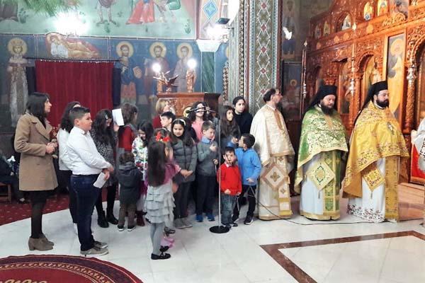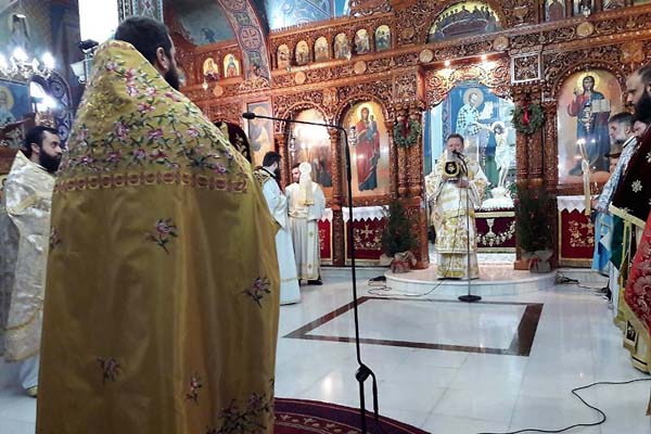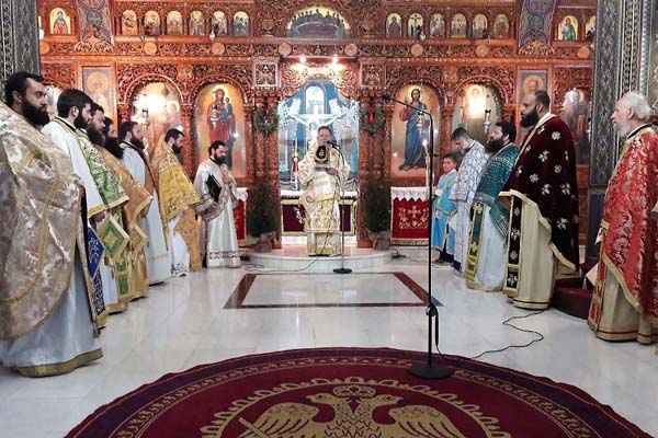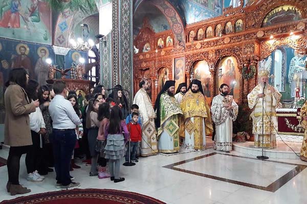 Στην Θεία Λειτουργία έψαλλαν οι Χοροί των Ιεροψαλτών, υπό την διεύθυνση των κ. Γεωργίου Γερογιάννη – Προέδρου του Συλλόγου Ιεροψαλτών Ευβοίας και κ. Στυλιανού Καραβά, ενώ μετά το «Δι’ ευχών» τα παιδιά των Κατηχητικών της Ενορίας έψαλλαν τα Πρωτοχρονιάτικα Κάλαντα.