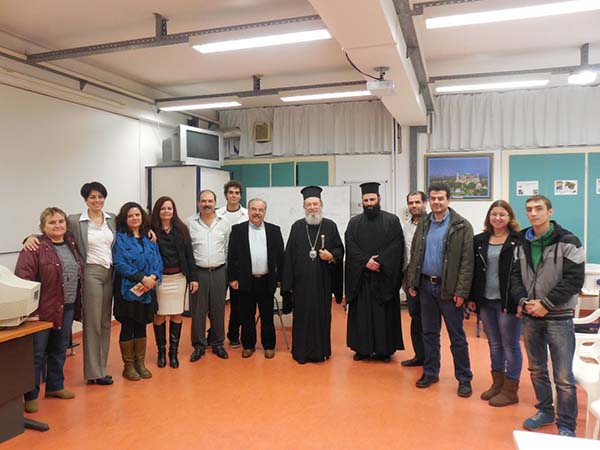 Εκεί, ο Σεβασμιώτατος, έγινε δεκτός με αισθήματα χαράς από τους Καθηγητές και τους μαθητές, όπως και τον Σχολικό Σύμβουλο Φιλολόγων δρ. κ. Άγγελο Μαντά και είχε την ευκαιρία να συζητήσει για αρκετή ώρα με τους μαθητές και να απαντήσει σε ερωτήματά τους, ενώ ο διάλογος υπήρξε γόνιμος και ουσιαστικός.