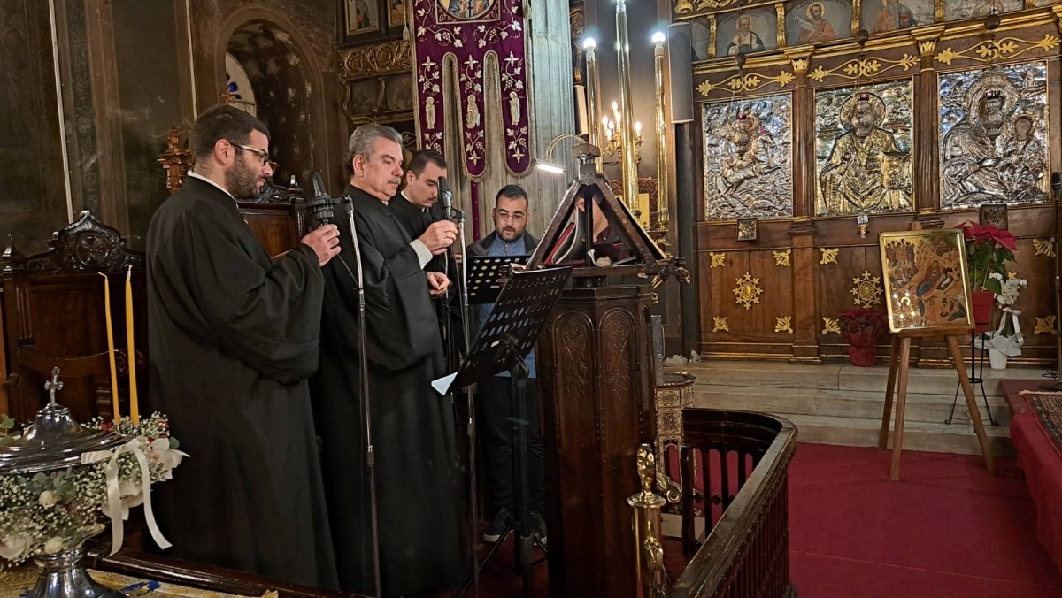 Στις Ιερές Ακολουθίες έψαλλαν θαυμασιώτατα οι Ιεροψάλτες του Ι. Ν. Αγίου Νικολάου Χαλκίδος κ. Σπυρίδων Σιμιτζής και κ. Δήμος Τσίμπος, μαζί με τα εκλεκτά μέλη των βυζαντινών χορών τους.