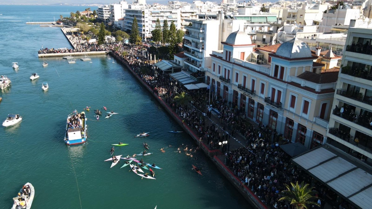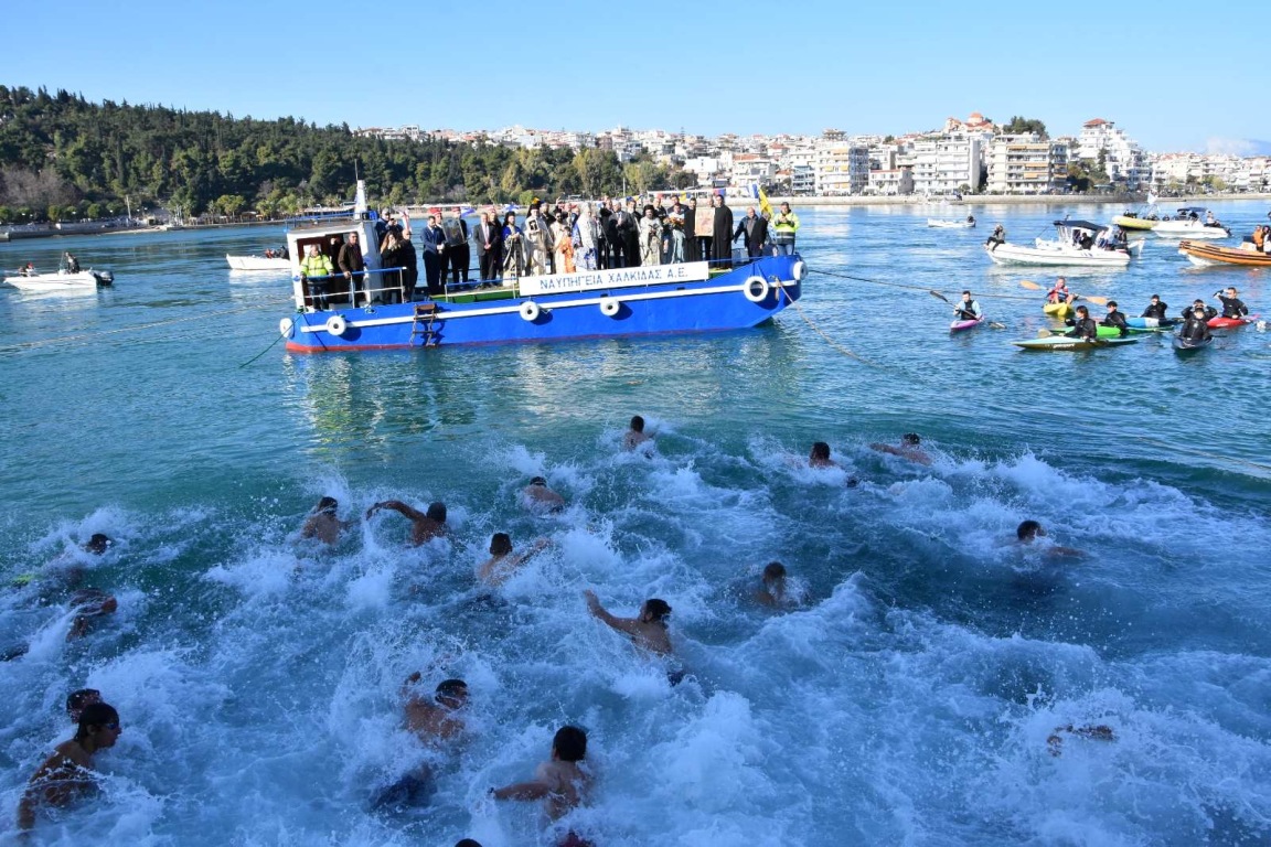 Εκεί ο Σεβασμιώτατος κ. Χρυσόστομος, ο Ιερός Κλήρος, οι επικεφαλής των αρχόντων του τόπου, επιβιβάστηκαν σε πλωτό σκάφος για την Τελετή της ρίψης του Τιμίου Σταυρού στη θάλασσα και τον Αγιασμό των υδάτων απέναντι από το ιστορικό κτίριο του Δημαρχείου της Πόλεως, ενώ όλη την παραλία της Χαλκίδος είχε κατακλύσει το πλήθος των ευσεβών πιστών.