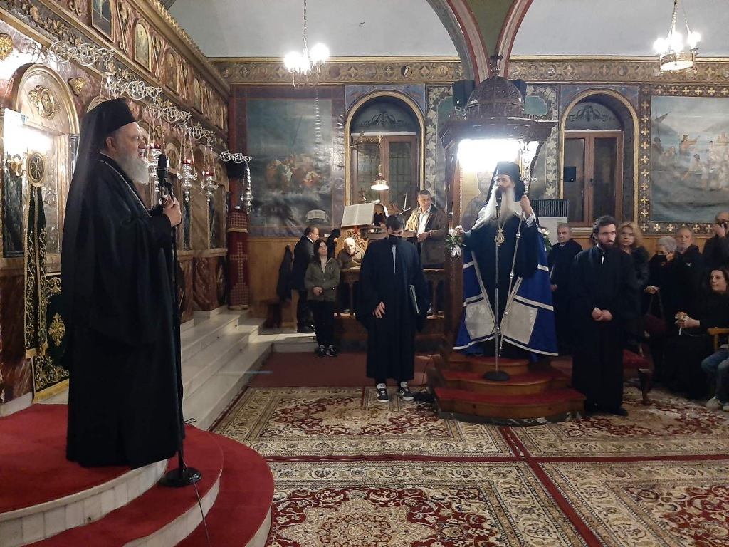 Στο προλογικό χαιρετισμό, που ο Σεβασμιώτατος Ποιμενάρχης μας κ. Χρυσόστομος απηύθυνε προς τον Σεβασμιώτατο Φθιώτιδος τον ευχαρίστησε για την παρουσία του και την ευλογία του, ενώ τον επήνεσε για την ένζηλη διακονία του και την άξια προϋπηρεσία του, ως Πρωτοσυγκέλλου και βοηθού Επισκόπου της Ι. Αρχιεπισκοπής Αθηνών. Ενώ, κατόπιν, ο Σεβασμιώτατος κ. Σύμεων ευχαρίστησε τον κυριάρχη Μητροπολίτη για την υποδοχή και ανέπτυξε εμπνευσμένα και διδακτικά την σημασία της συνεισφοράς του Τιμίου Προδρόμου στην Θεία Οικονομία.