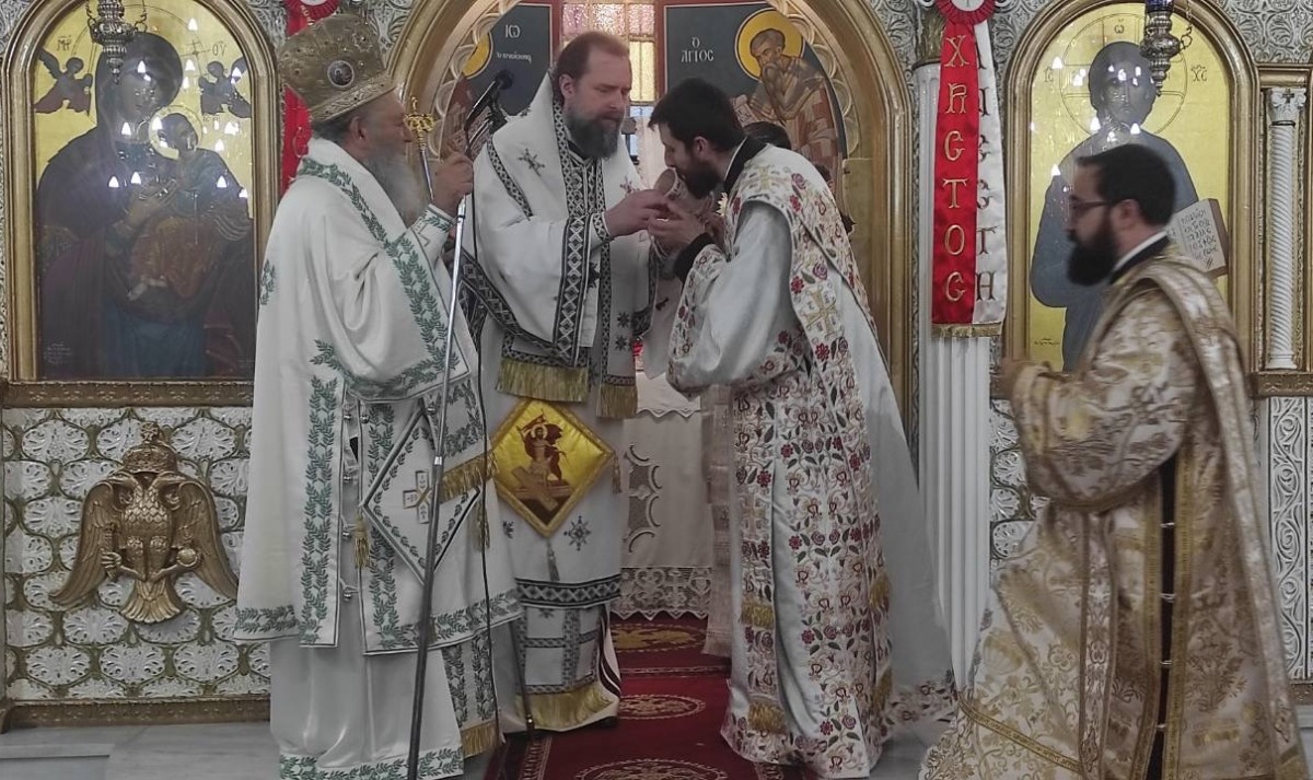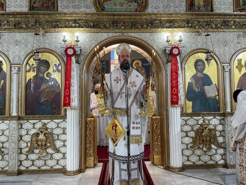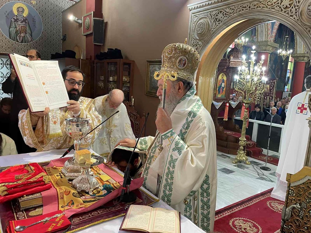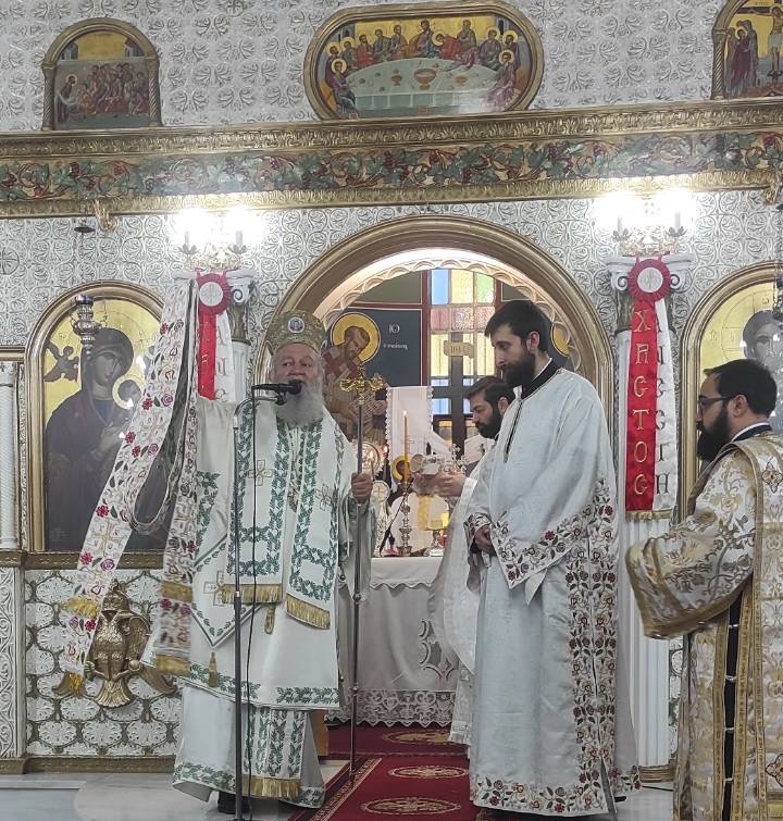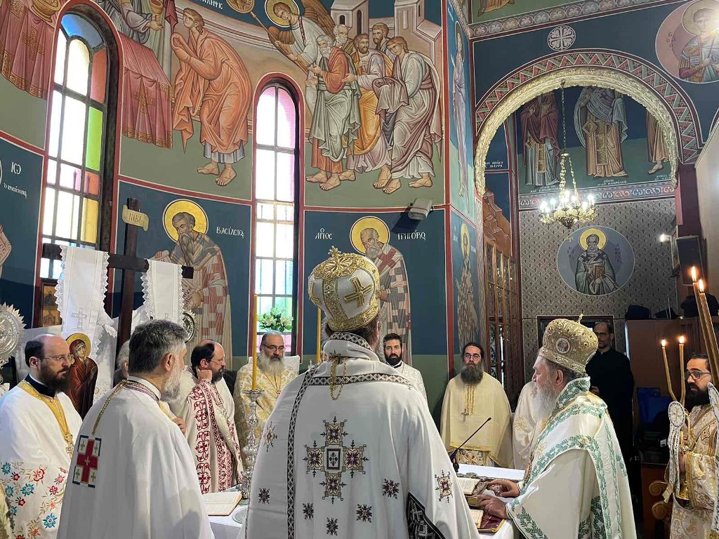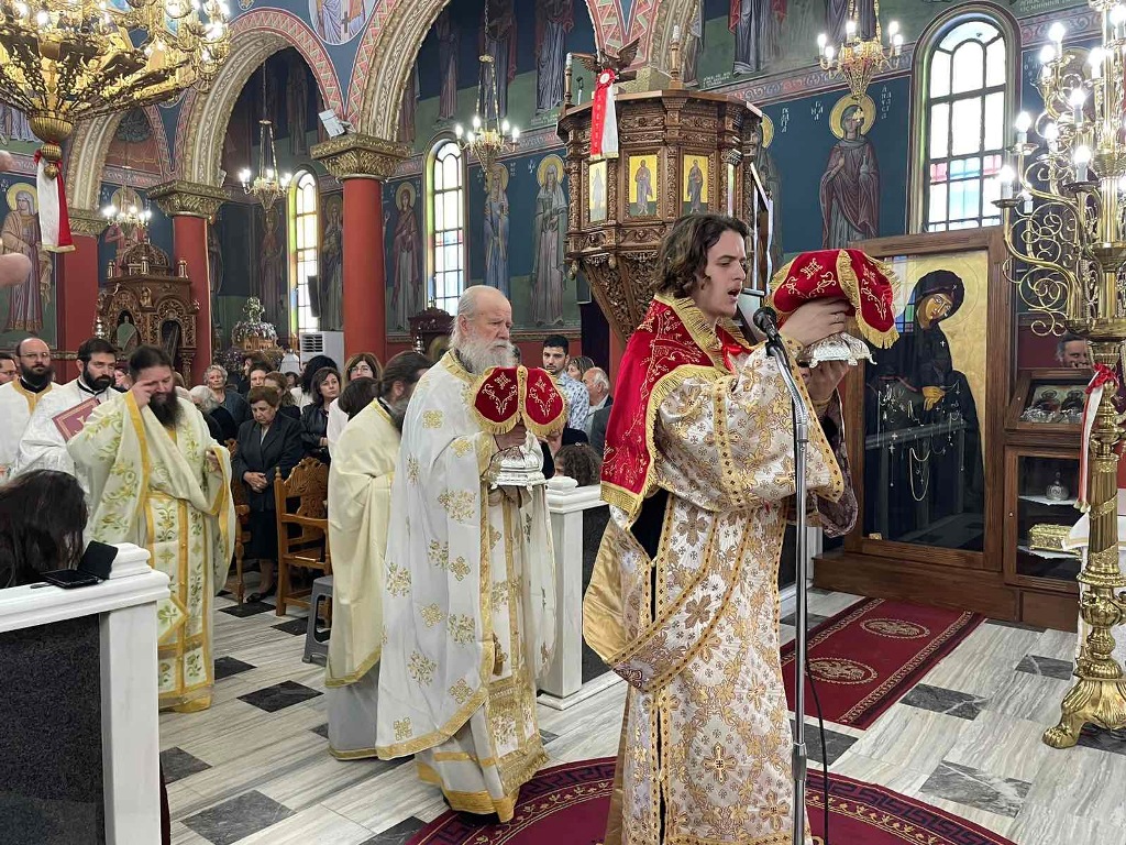 Εν συνεχεία, τελέσθηκε το αρχιερατικό συλλέιτουργο, με τη συμμετοχή Κληρικών από την Χαλκίδα και τα περίχωρά της, την παρουσία αντιπροσωπίας της Ιεράς Μονής Δοχειαρίου, με την οποία ο νέος Διάκονος συνδέεται πνευματικά, αφού εκεί εγκαταβιώνουν δύο κατά σάρκα συγγενείς του.