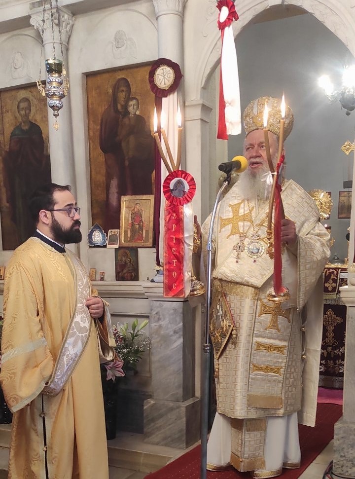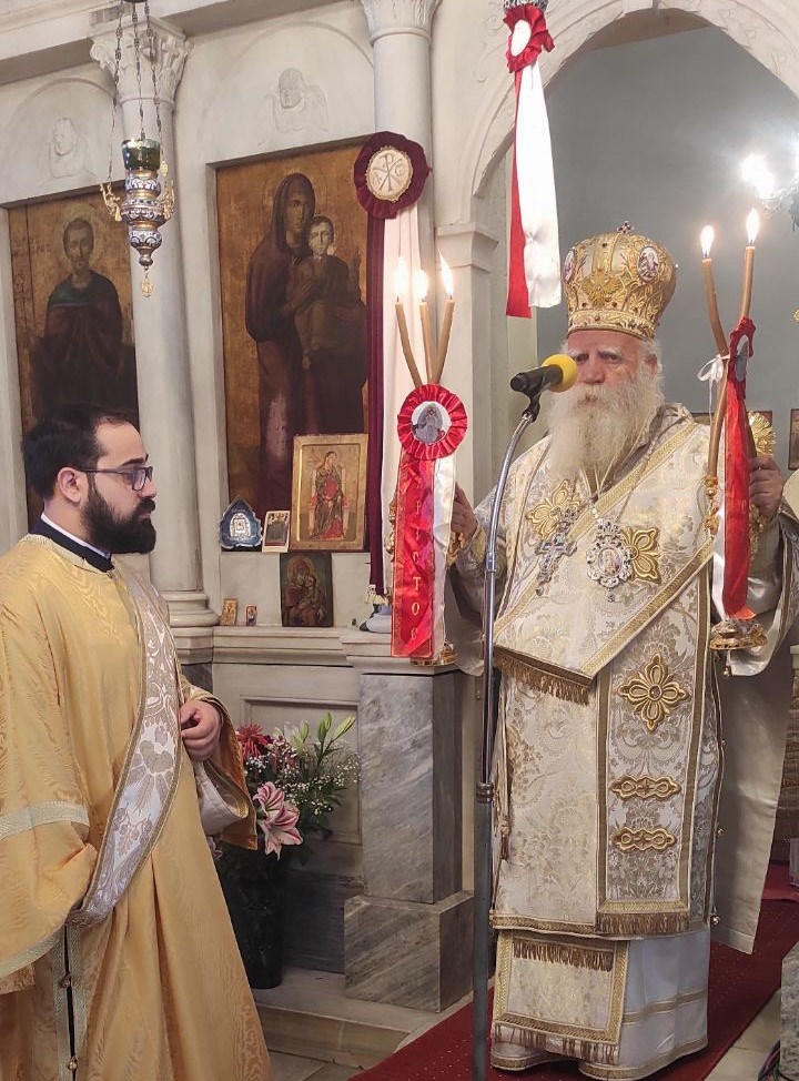 Το απόγευμα, τελέσθηκε ο πανηγυρικός δισαρχιερατικός Εσπερινός, χοροστατούντος του Σεβασμιωτάτου κ. Χρυσοστόμου, ο οποίος κήρυξε τον θείο λόγο, αφού νωρίτερα ο οικείος Ποιμενάρχης κ. Σεραφείμ, με θερμούς λόγους, καλωσόρισε τον Σεβασμιώτατο Χαλκίδος κ. Χρυσόστομο και μίλησε για τους αδελφικούς δεσμούς που συνδέουν τους δύο ιεράρχες.