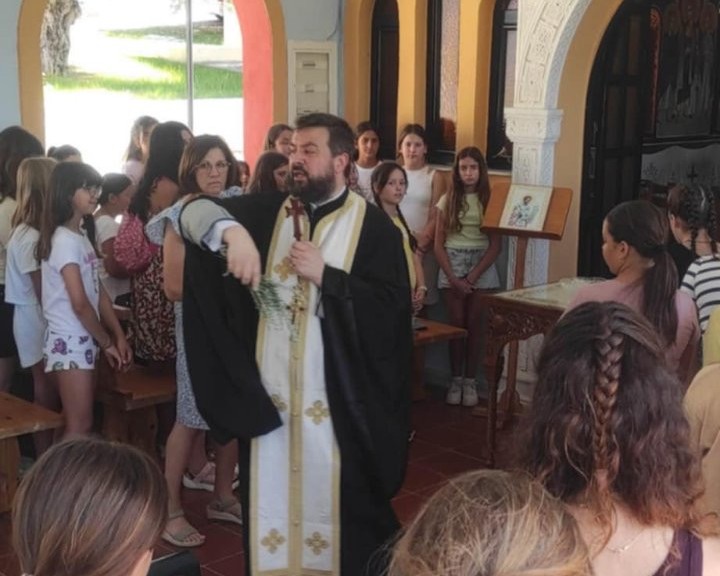 Στον Ιερό Ναό των αγίων Ιωάννου του Χρυσοστόμου και Ολυμπιάδος της διακονίσσης, των Κατασκηνώσεων, τελέσθηκε ο αγιασμός της ενάρξεως, από τον εκπρόσωπο του Σεβασμιωτάτου Ποιμενάρχου μας, Μητροπολίτου Χαλκίδος κ. Χρυσοστόμου, αρχιμ. Θεοφύλακτο Τσαγκάρη-προϊστάμενο του Ενοριακού Ι. Ν. Ευαγγελισμού της Θεοτόκου Κανήθου Χαλκίδος και Αρχιερατικό Επίτροπο Χαλκίδος, παρουσία της αρχηγού κ. Ματίνας Βαρκάδου-Κουβαρά, των στελεχών και των κατασκηνωτριών της πρώτης περιόδου (θηλέων Ε΄ και Στ΄ Δημοτικού).