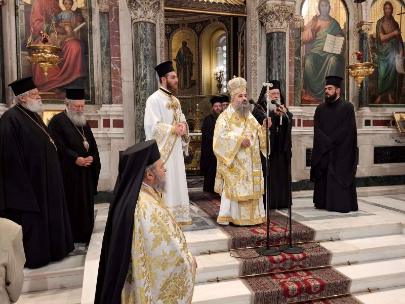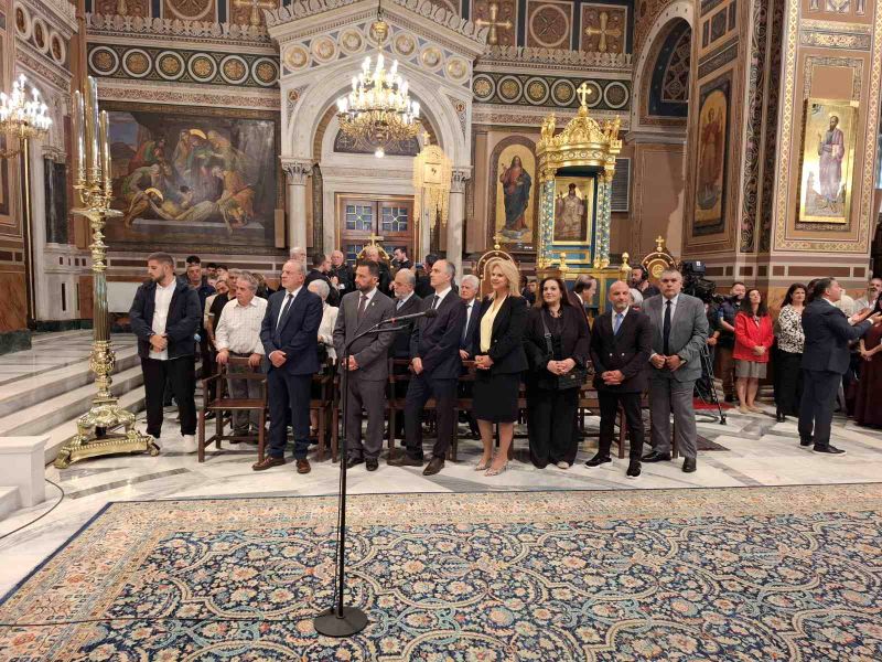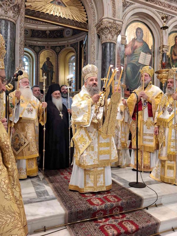 Της Θείας Λειτουργίας προεξήρχε ο Μακαριώτατος Αρχιεπίσκοπος Αθηνών και πάσης Ελλάδος κ. Ιερώνυμος, συμπαραστατούμενος από Σεβασμιωτάτους Μητροπολίτες Δημητριάδος και Αλμυρού κ. Ιγνάτιο, Χαλκίδος κ. Χρυσόστομο, Μεσσηνίας κ. Χρυσόστομο, Νέας Ιωνίας, Φιλαδελφείας, Ηρακλείου και Χαλκηδόνος κ. Γαβριήλ, Ιερισσού, Αγίου Όρους και Αρδαμερίου κ. Θεόκλητο, Θεσσαλιώτιδος και Φαναριοφερσάλων κ. Τιμόθεο, Θήρας, Αμοργού και Νήσων κ. Αμφιλόχιο, Γόρτυνος και Μεγαλοπόλεως κ. Νικηφόρο, Παραμυθίας, Φιλιατών και Γηρομερίου κ. Σεραπίωνα και τον Θεοφιλέστατο Επίσκοπο Σκοπέλου κ. Νικόδημο. Επίσης εκκλησιάσθηκαν πολλοί άλλοι Αρχιερείς.