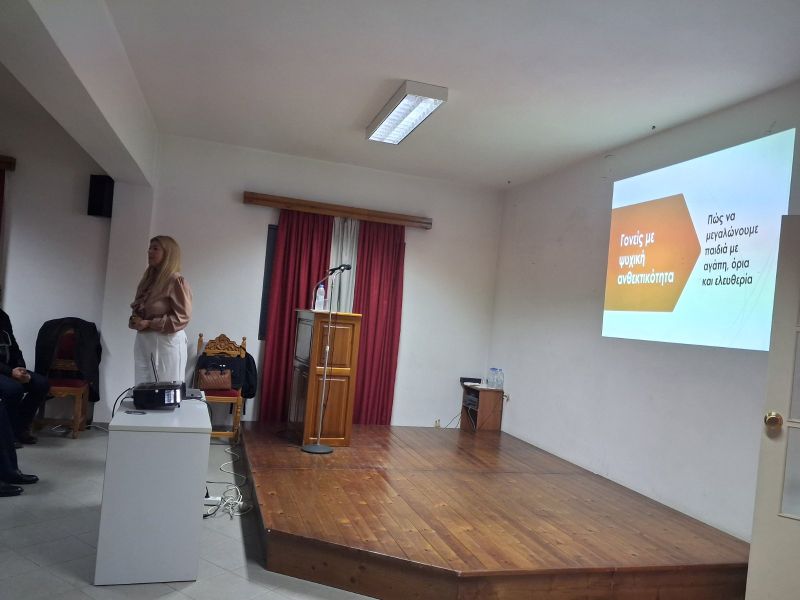 γ) στα Ψαχνά η κ. Γιούλη Σκλιά-Λάμπρου, Εκπαιδευτικός με εξειδίκευση σε Ε.Μ.Δ. και σύμβουλος προσωπικής ανάπτυξης, με θέμα: «Γονείς με ψυχική ανθεκτικότητα. Πώς να μεγαλώνουμε παιδιά με αγάπη, όρια και ελευθερία».