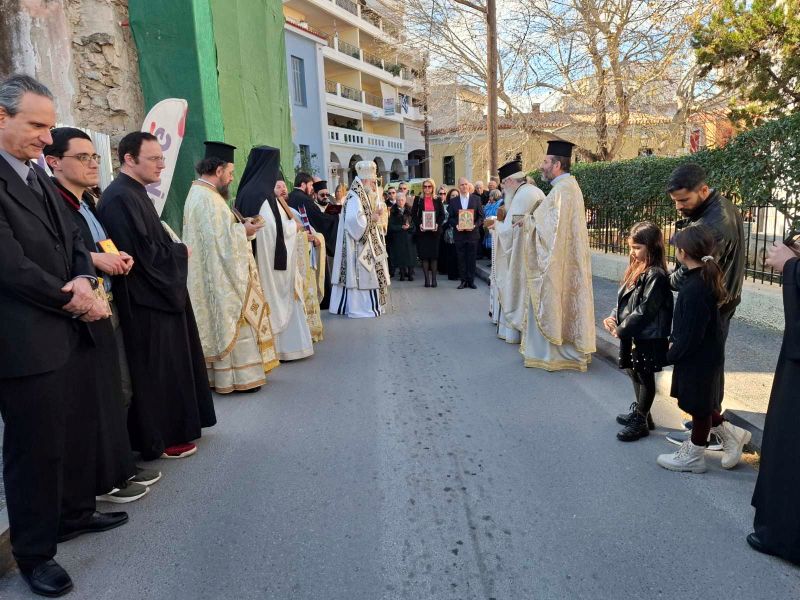 Η λατρευτική σύναξη ολοκληρώθηκε με τη λιτάνευση των ιερών εικόνων από τον Θεοφιλέστατο κ. Νικόδημο, τους συλλειτουργούς του Κληρικούς, τους αιρετούς εκπροσώπους του Κοινοβουλίου, της Περιφέρειας Στερεάς Ελλάδος, του Δήμου Χαλκιδέων, της Π.Ε. Ευβοίας και όλους τους εκκλησιασθέντες ενορίτες και προσκυνητές.