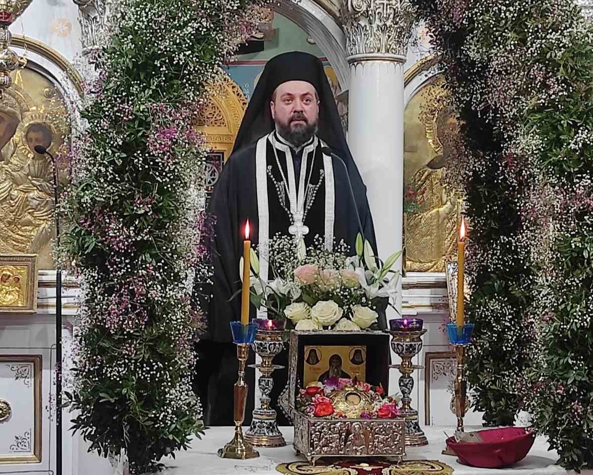 Στους προσελθόντες και συμπροσευχομένους προσκυνητές κήρυξε τον θείο λόγο ο αρχιμ. Θεοφύλακτος Τσαγκάρης-Αρχιερατικός Επίτροπος Χαλκίδος και προϊστάμενος του Ενοριακού Ι. Ναού Ευαγγελισμού Θεοτόκου Κανήθου Χαλκίδος, ο οποίος αφού περιέγραψε το ιστορικό πλαίσιο της νίκης της Ορθοδοξίας, μετά την έριδα της εικονομαχίας, ανέπτυξε πώς ο Θεός σαρκώνεται και εικονίζεται, για να αναπλάσει το κατ’ εικόνα του ανθρώπου και να τον ανακαλέσει στη σωτηρία.