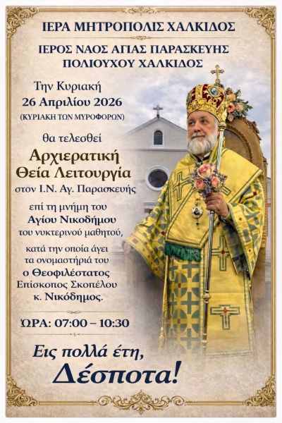 ΑΝΑΚΟΙΝΩΣΗ ΕΟΡΤΗΣ ΕΠΙΣΚΟΠΟΥ ΣΚΟΠΕΛΟΥ ΝΙΚΟΔΗΜΟΥ