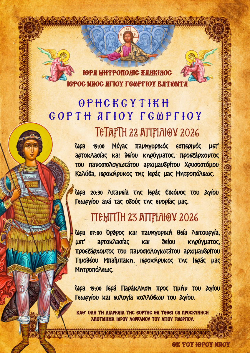 ΠΡΟΓΡΑΜΜΑ ΕΟΡΤΑΣΜΟΥ ΕΝΟΡΙΑΚΟΥ Ι. ΝΑΟΥ ΑΓ. ΓΕΩΡΓΙΟΥ ΒΑΤΩΝΤΑ